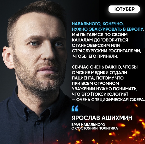 Терапевт и кардиолог, который наблюдает Навального с 2013 года, рассказал журналистам о том, что политика нужно эвакуировать в Европу для дальнейшего лечения