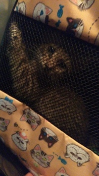 Ехал домой с работы и чуть не переехал, еще один авто его чуть не переехал.. Остановился, вышел, начал преследование и Нашел! С шести вечера до восьми ловил под капотами, потом знакомая подвезла кошколовку и вуаля.